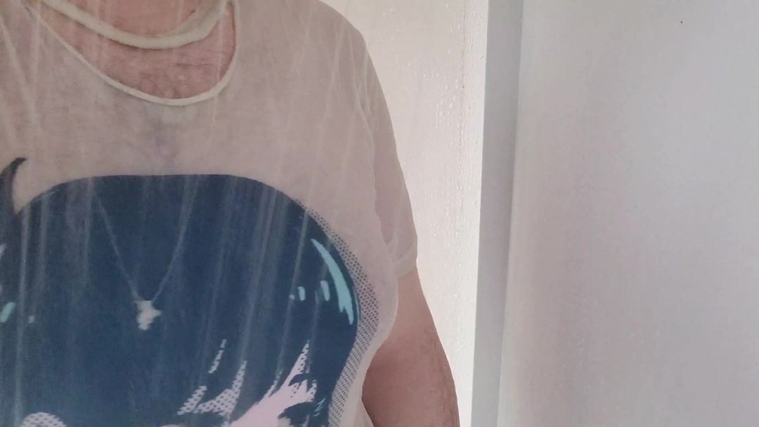 By that point, the collar on that t-shirt we've all come to know and love is pretty much gone, hanging by a single thread. Join me in yet another shower for this deserving print as the collar gets definitely loose from the t-shirt, making it completely unwearable outside. Notice how a piece of knotted fabric almost makes it look like I have a cute pendant hanging from my neck area.