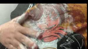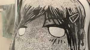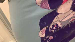 In this video, I walk into the shower wearing a Toastgirl sweater as pants, the Wolfboy sweater, over it a t-shirt with a huge print on the front, and an opened-up hoodie to cover it. The reason is that this t-shirt actually has two prints, and one of them is in the back. This is something I completely disapprove of, so when giving it its well deserved wetlook, I need this shirt to be covered by something else. Nevertheless, you'll get to catch a glimpse of the dreaded back print as I shower all of my clothes, soaking them, and you can perceive the Wolfboy sweater and the graphic t-shirt the character himself is wearing through the wet white fabric of the t-shirt. I end up removing the t-shirt to be able to shower and soap Wolfboy in the end.